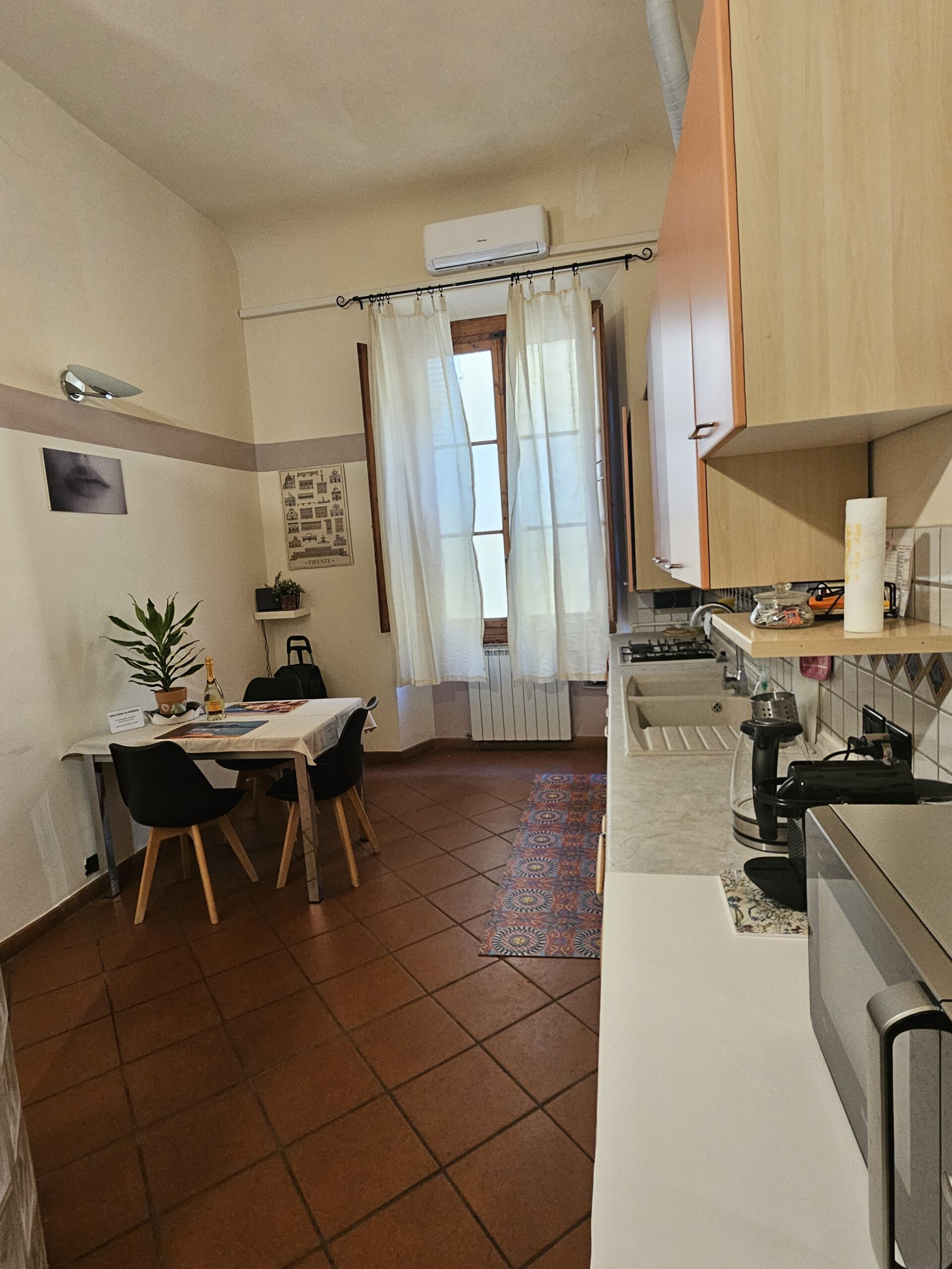Apostoli Open Space is a bright, elegant, and functional studio located in Borgo SS. Apostoli 25, one of the oldest and most charming streets in Florence. Situated on the third floor with elevator access, it offers a refined atmosphere with high ceilings, original decorative details, warm wooden floors, and large windows that fill the space with natural light. Perfect for couples or solo travelers (possibility of hosting one child on the sofa bed), it provides comfort, style, and an unbeatable central location.