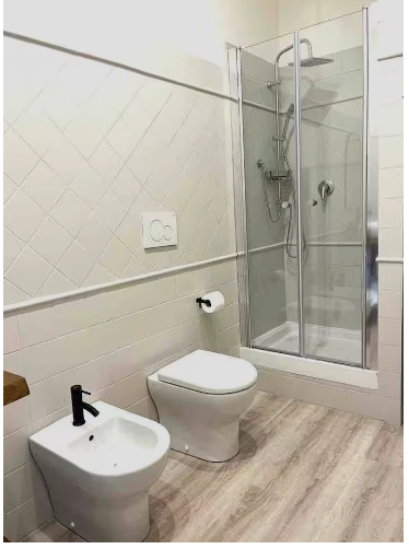 - Bathroom with: Shower, Bidet, Hairdryer, Hypoallergenic shampoo, Shower gel, Cleaning products, Towels (3 per guest: shower, face, bidet), One bath mat per reservation