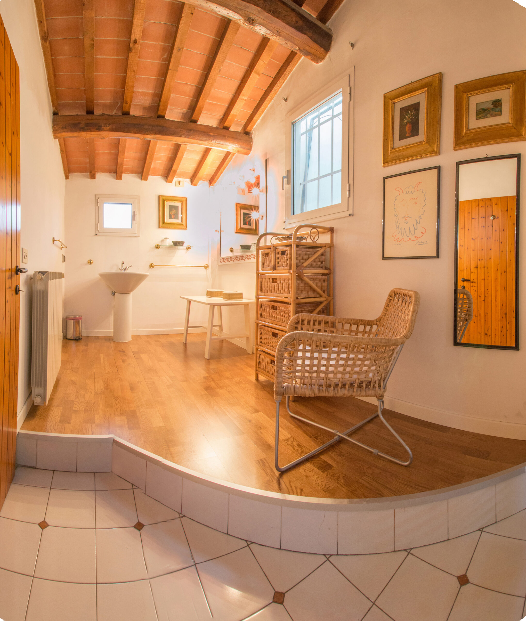 Spread across more than 120 square meters and thoughtfully arranged around a large open space, Bellavista combines historic Florentine charm with modern amenities to create a warm and inviting atmosphere.