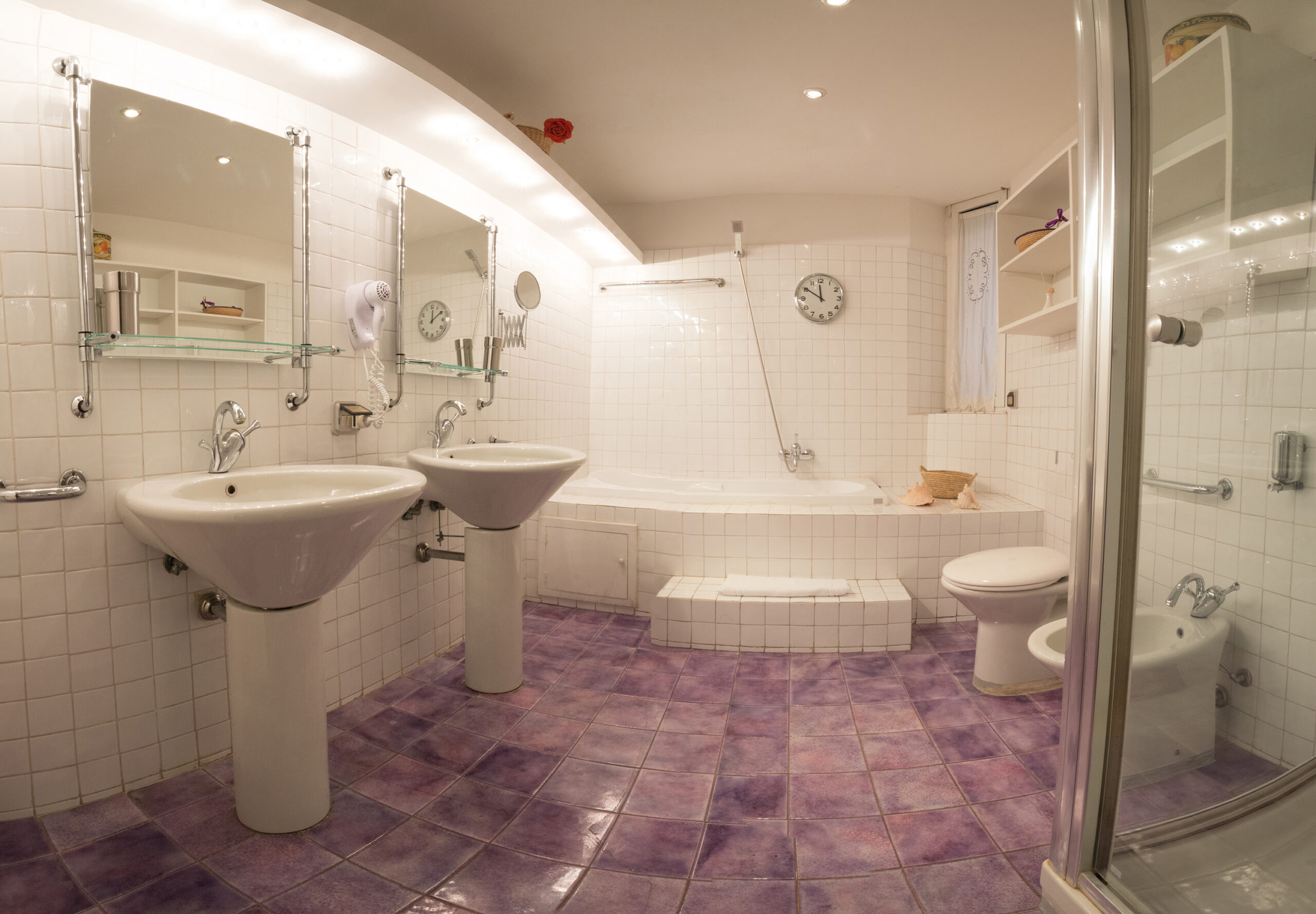 - Main Bathroom: Features two sinks, a shower, bathtub, toilet, and bidet.
