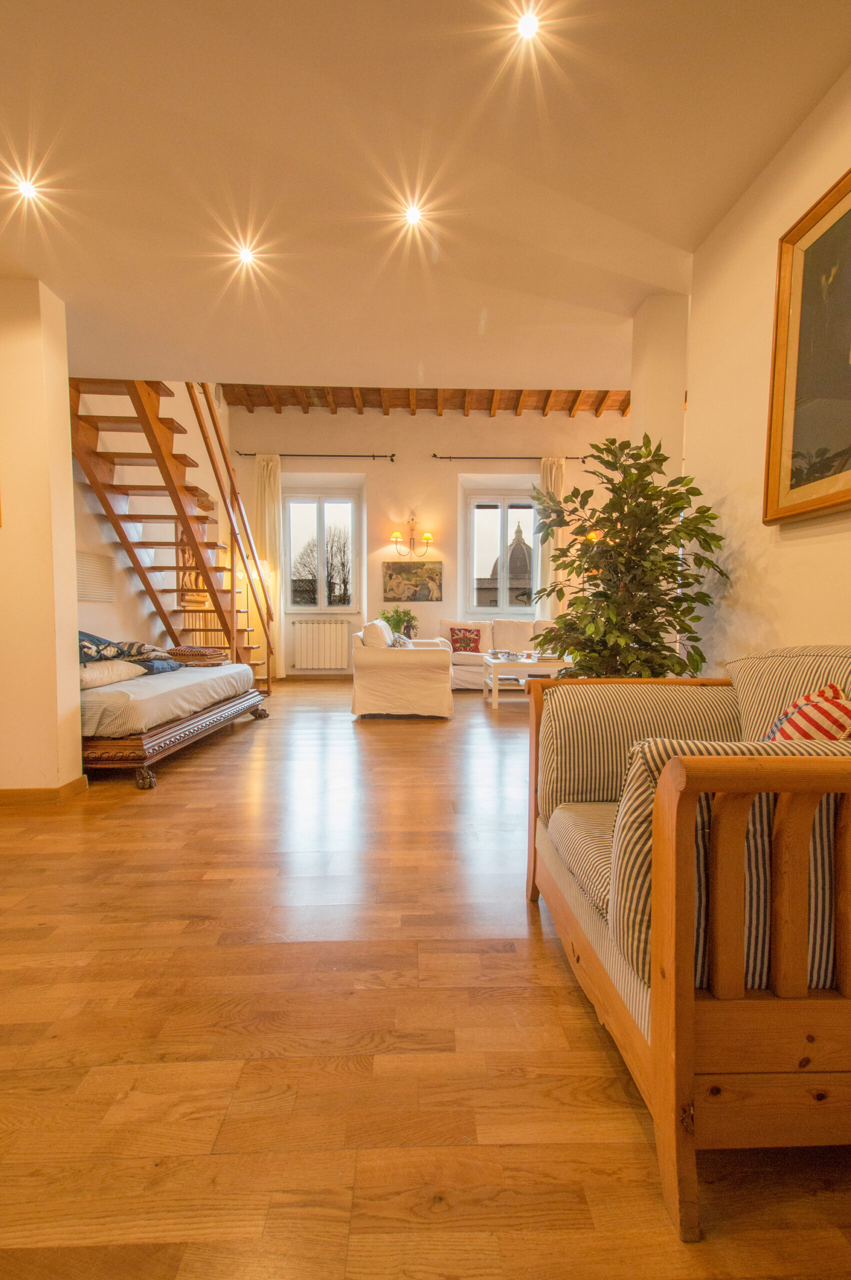 Welcome to Bellavista Apartment, an exceptional two‑level home located in the very heart of Florence. Bright, expansive, and designed for comfort, this apartment offers breathtaking panoramic views of the Duomo, Palazzo Vecchio, and the city’s iconic rooftops. With its generous layout and prime location, it is the perfect choice for families, large groups of friends, or colleagues traveling together.