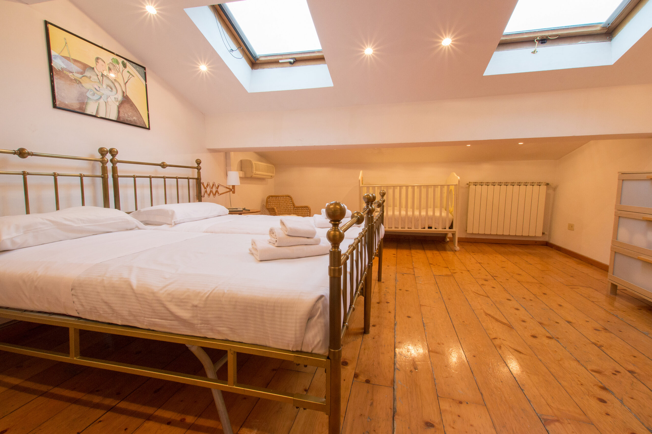 - Bedroom 4: A small, low‑ceiling bedroom ideal for children, with two regular‑size single beds.
