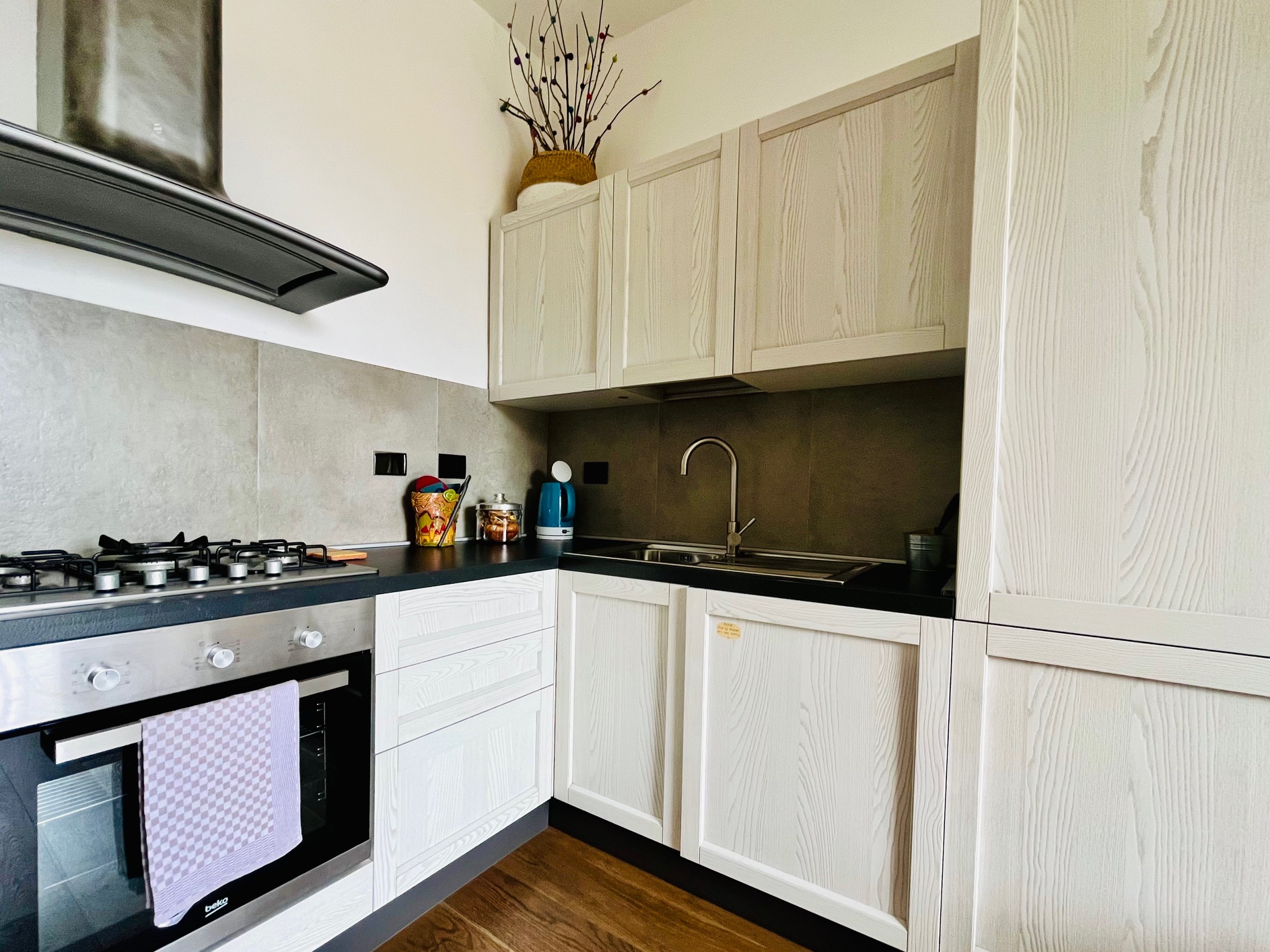- Kitchen: Fully equipped with gas stove, regular oven, microwave, dishwasher, fridge/freezer, kettle, moka pot, French press, toaster, and all essential cookware and utensils.