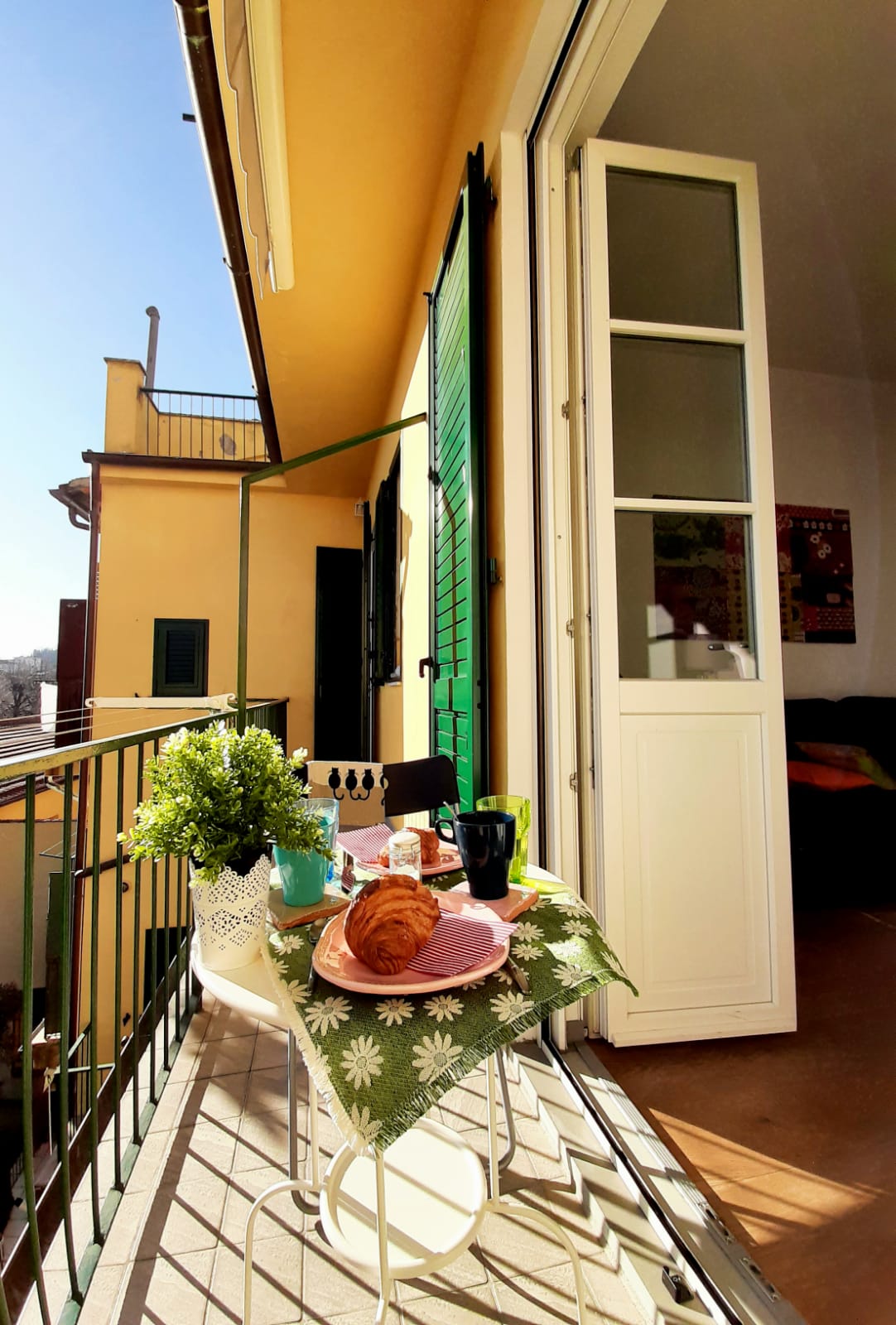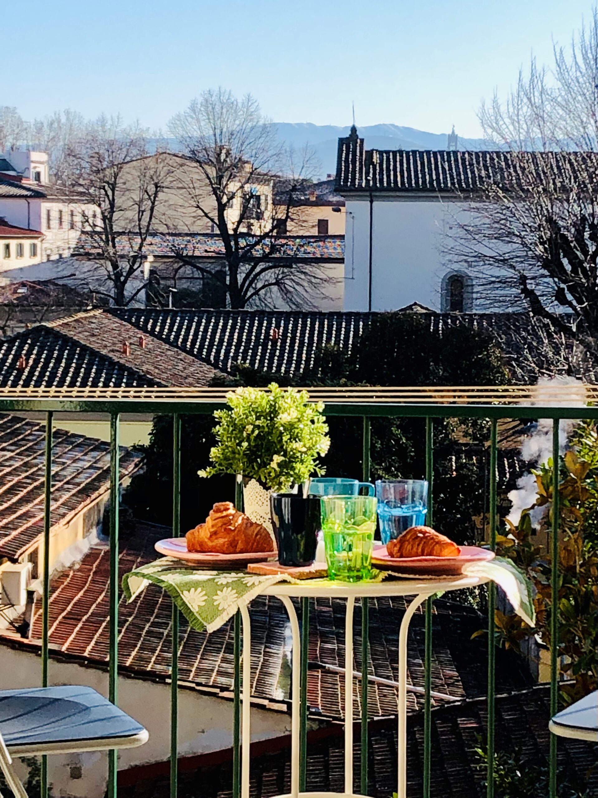 - Balcony: Overlooks the rooftops of the left bank of the Arno. Includes a round breakfast table with two chairs — perfect for morning coffee or evening relaxation.
