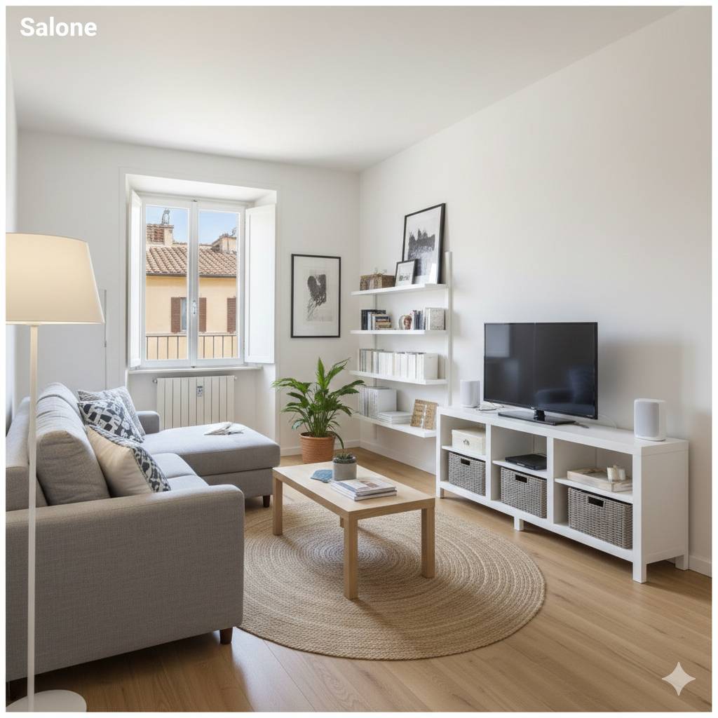 Enjoy a stylish stay in this bright, minimalist apartment featuring a clean “IKEA-inspired” design. The open living area and fully equipped kitchen provide a functional yet cozy atmosphere, perfect for relaxing after a day of sightseeing. Large windows offer a glimpse of authentic Italian architecture, filling the space with beautiful natural light.