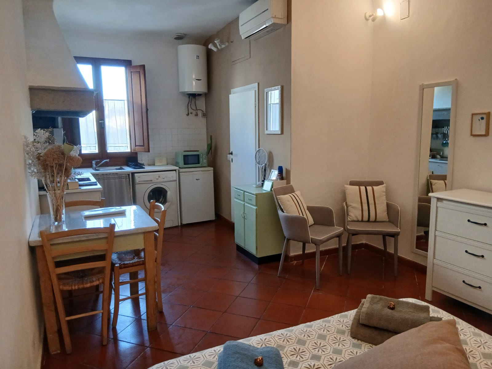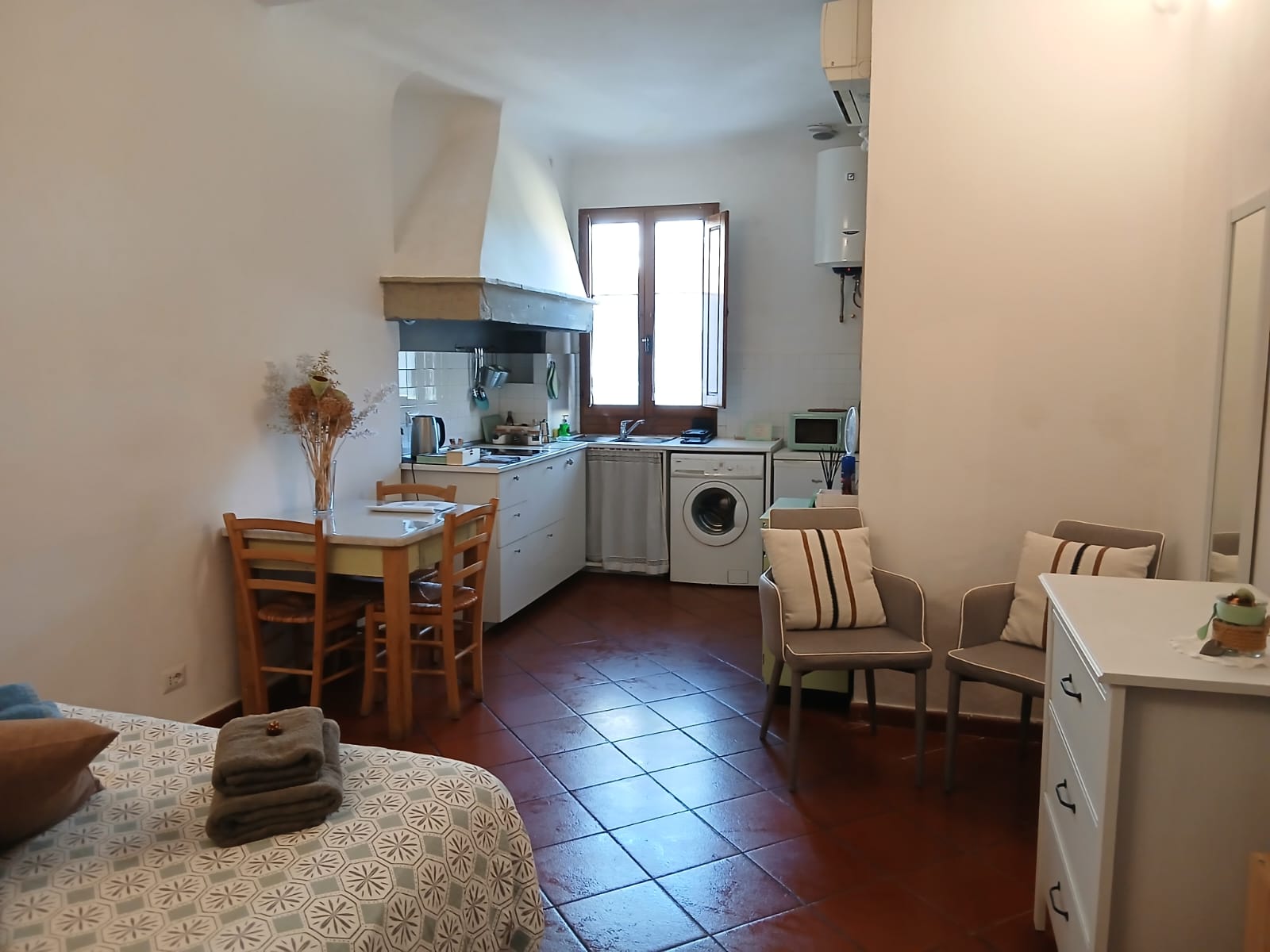 Casina BP is a bright and compact 25 m² studio located in the very heart of Florence’s historic center, just steps away from the city’s most iconic monuments. Designed for comfort and practicality, it offers all essential amenities for a pleasant stay — whether you’re visiting for leisure, study, or work. The studio is on the third floor of a historic building with no elevator, typical of Florence’s ancient architecture.
