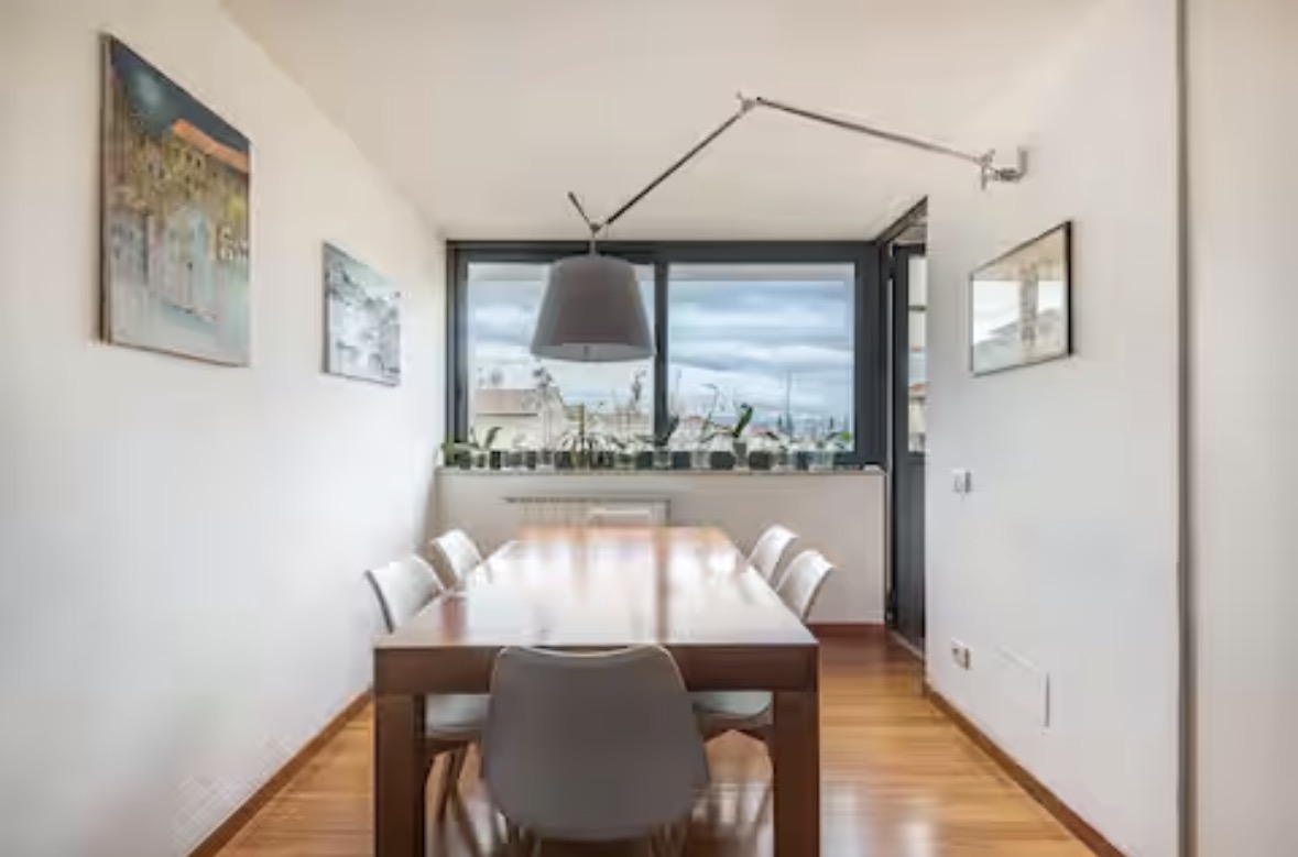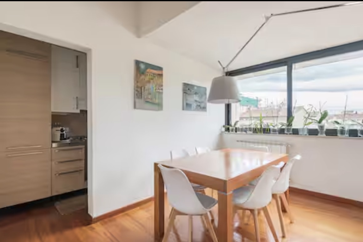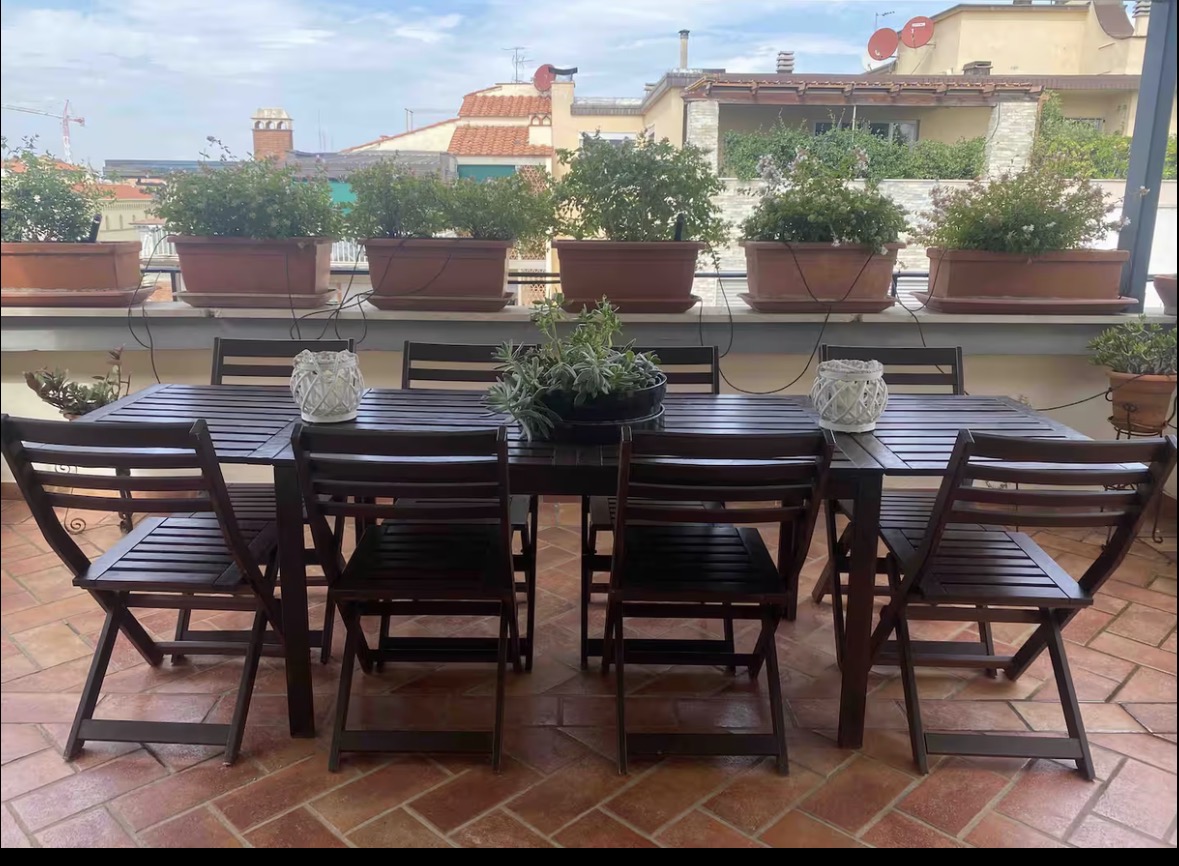This beautiful 105 m² penthouse apartment, located at Via Fra’ Domenico Buonvicini 16, offers an elegant and spacious retreat just a short walk from Piazza Savonarola. Situated on the top floor of a residential building, the home is surrounded on all sides by wonderful terraces, including a stunning 40 m² outdoor space furnished with a wooden table for eight people — perfect for dining, relaxing, or enjoying Florence’s warm evenings. The apartment combines comfort, privacy, and generous indoor and outdoor areas, making it an ideal choice for families, colleagues, or anyone seeking a refined and peaceful stay close to the historic center.