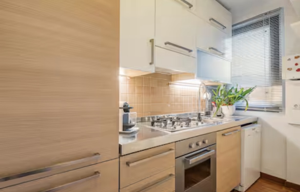 - Fully equipped kitchen: Dishwasher, washing machine, gas stove, oven, refrigerator with freezer, essential cookware and utensils