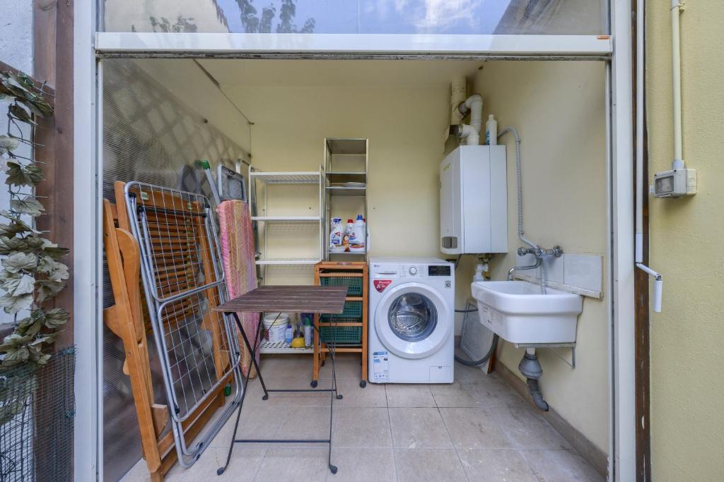 - Laundry area with drying rack