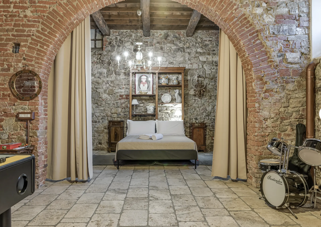 Welcome to The Wishing Well, a remarkable open‑space retreat set inside a beautifully preserved 17th‑century country house. Located in the peaceful hills just outside Florence, this 120‑square‑meter loft blends centuries‑old architecture with modern comfort, creating a warm and inspiring atmosphere. With stone walls, exposed beams, and terracotta and travertine floors, this home is ideal for guests who appreciate authentic Tuscan charm paired with contemporary amenities.
