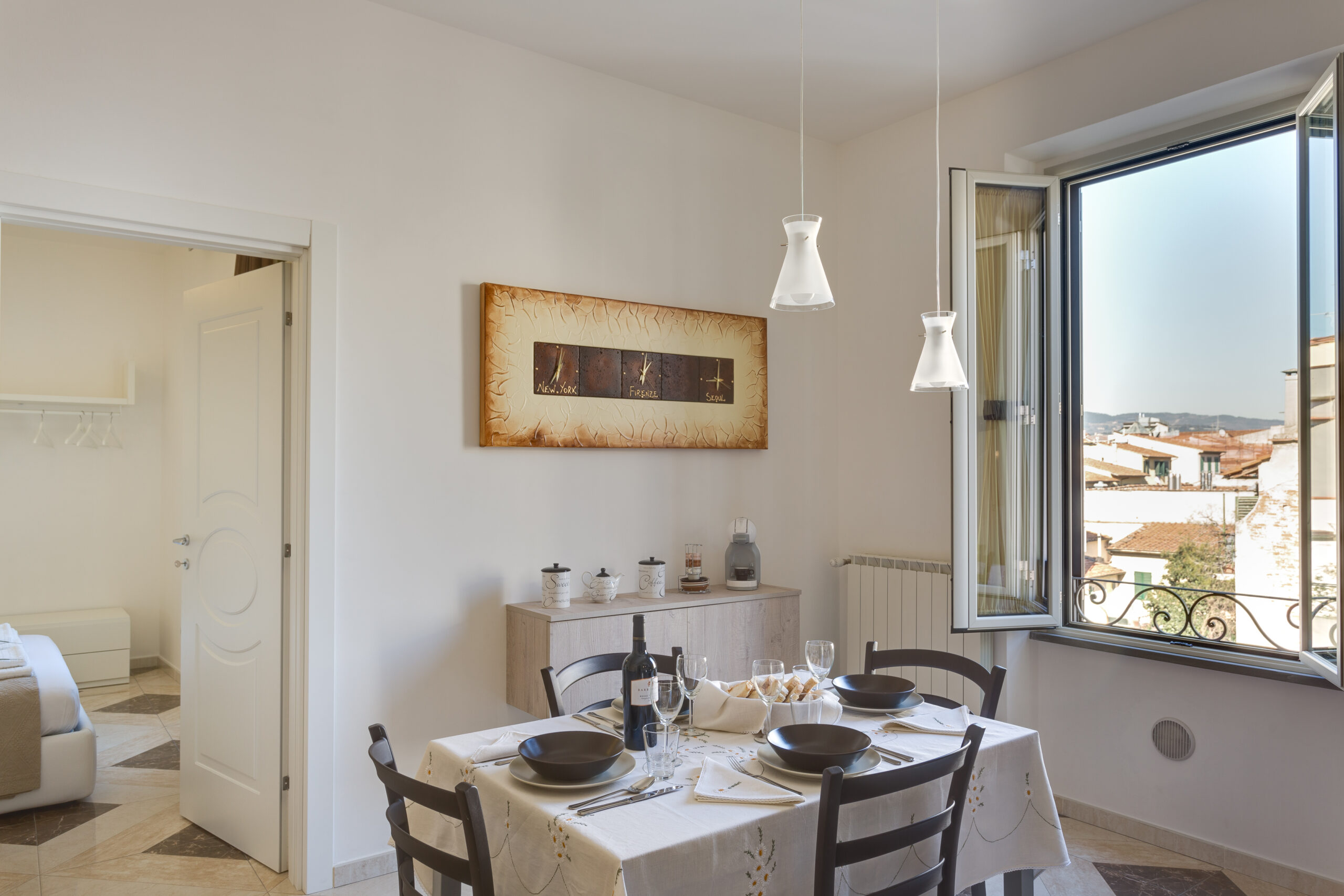 Welcome to Marte Suite, a beautifully renovated apartment designed to offer comfort, warmth, and a true “home away from home” feeling. Located in a charming 19th‑century building in the heart of Florence, this suite combines modern amenities with authentic Florentine character. From the living room, you’ll enjoy a serene and uplifting view of the hills surrounding Florence, including the iconic Fiesole landscape.