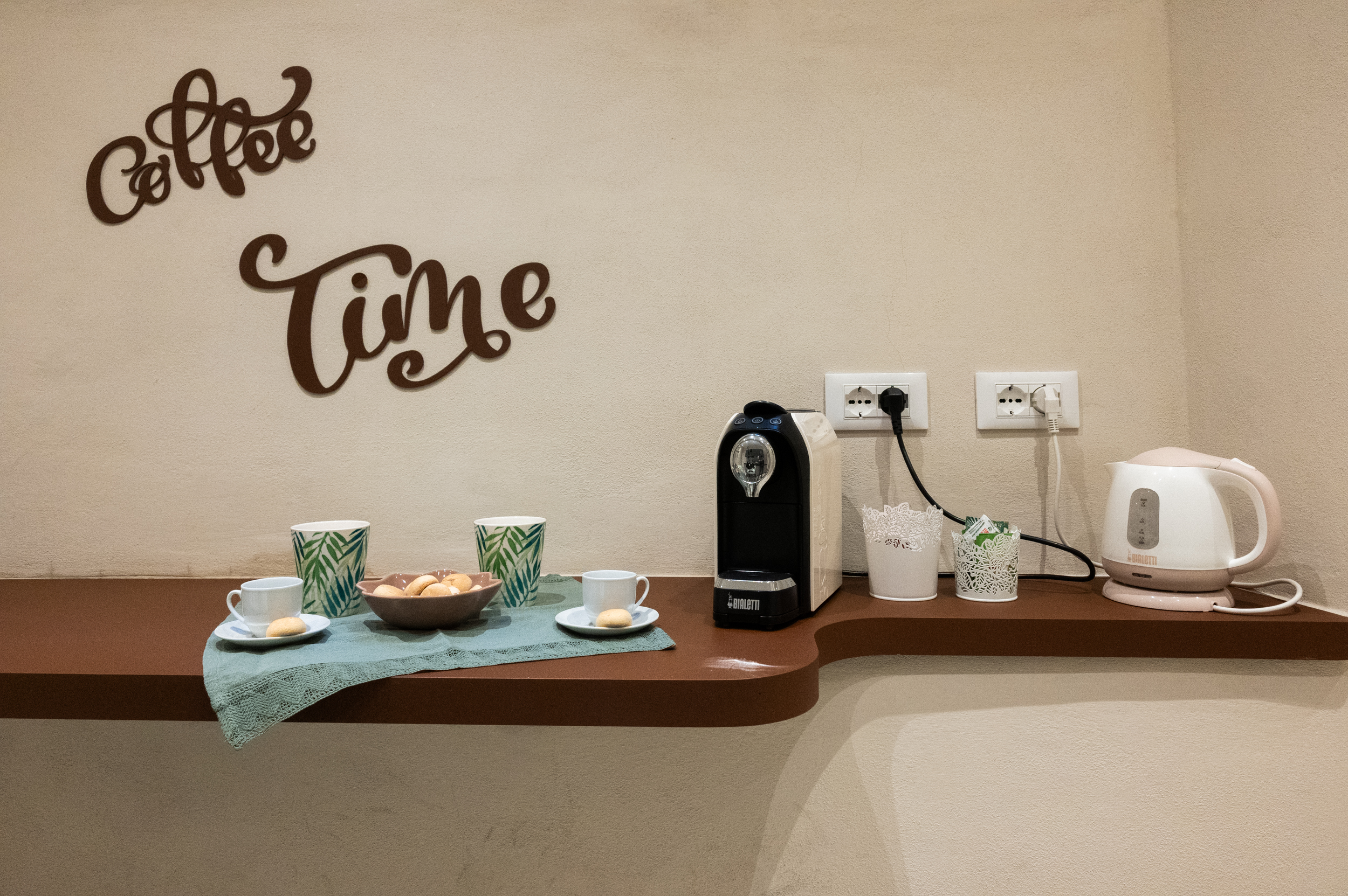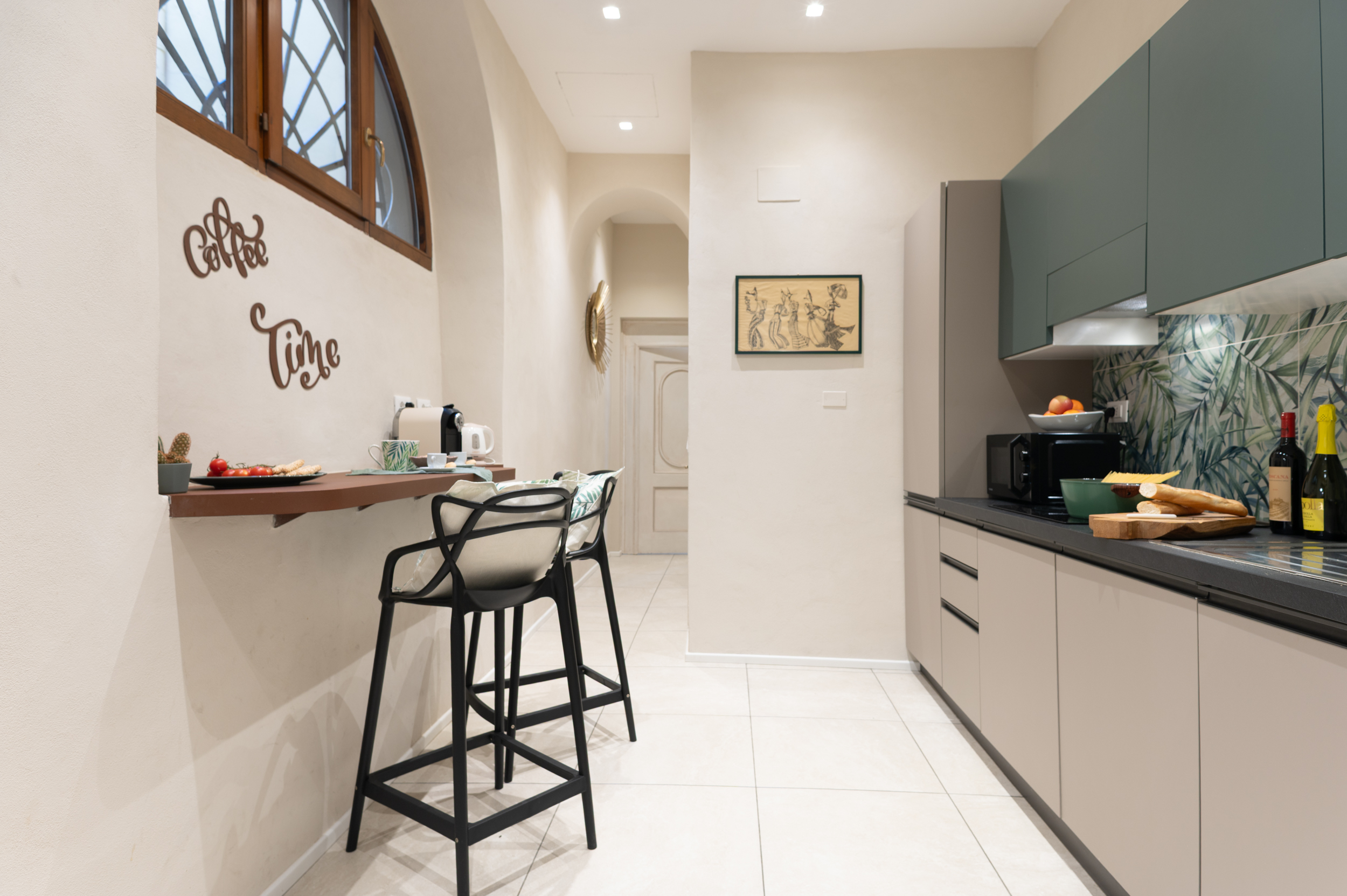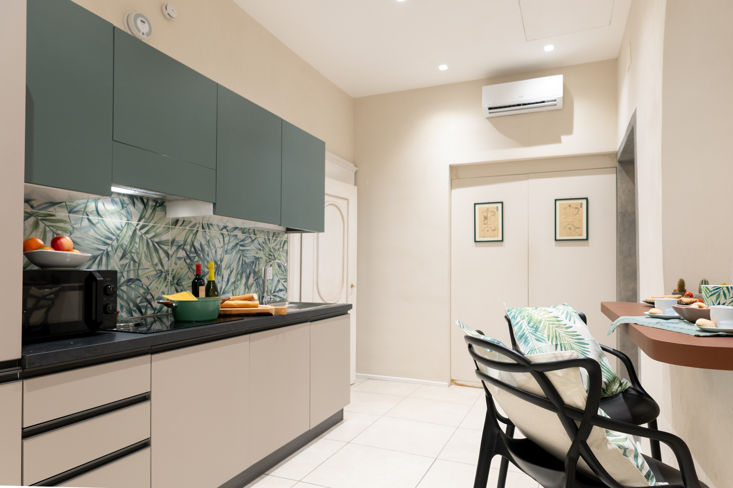 - Kitchen: Fully equipped with cooktop, dishwasher, microwave, espresso coffee machine, kettle, refrigerator, freezer, cookware, utensils, and a dedicated breakfast/aperitivo corner.
