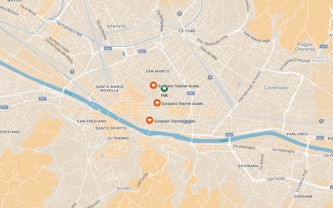 The location is exceptional: central yet peaceful, set between two major historic institutions — the National Archaeological Museum of Florence and the University of Florence (Faculty of Humanities). From here, all of Florence’s main attractions are easily reachable on foot: the Duomo is just 5 minutes away, while the Accademia Gallery and the famous leather market are within 10 minutes.