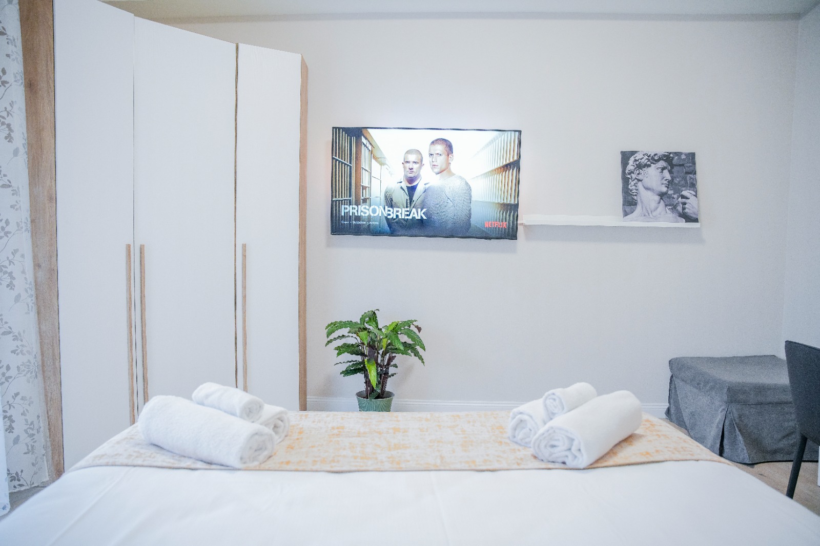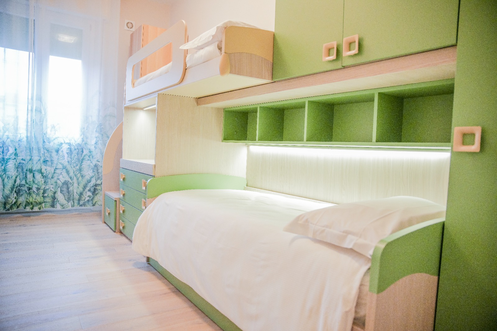 Master Bedroom: Bright, spacious, with a double bed; upon request, an additional single bed or a baby crib can be added.