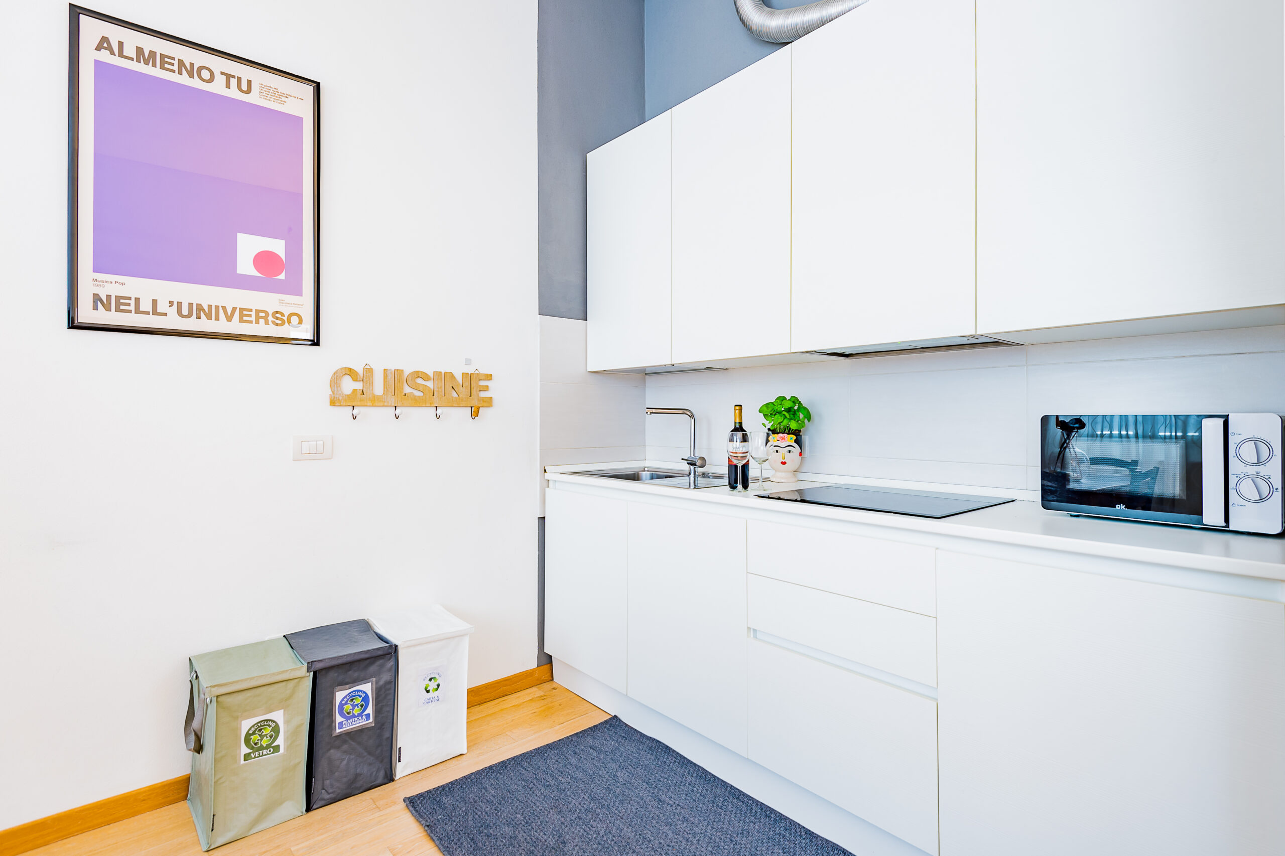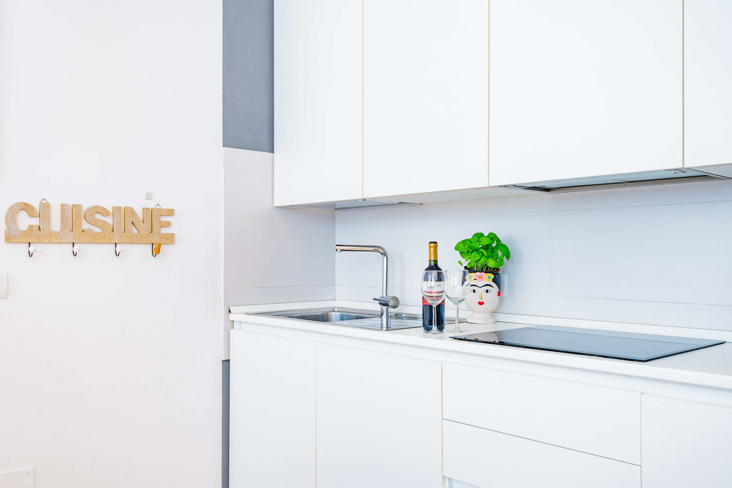 - Fully equipped kitchen: Induction cooktop, refrigerator, freezer, microwave, dishwasher, kettle, Nespresso machine, Moka pot, toaster, cookware, dishes, pantry basics (oil, salt, pepper, sugar)