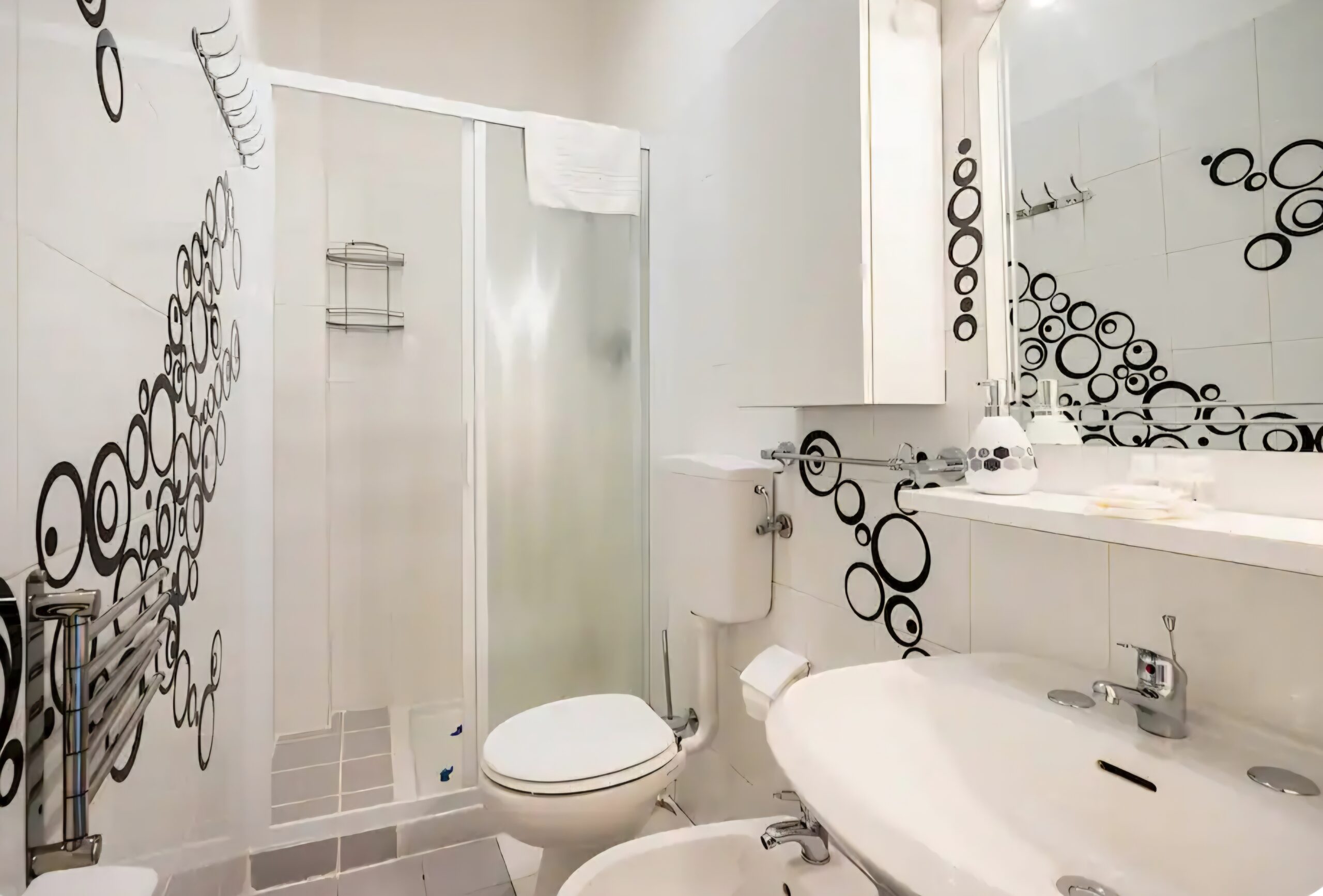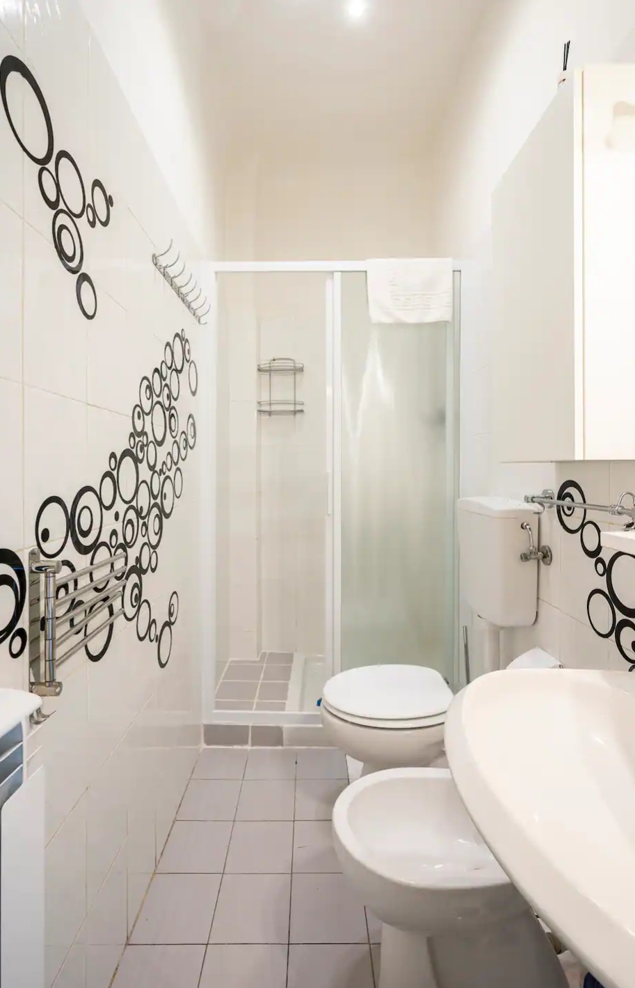 - Large shower cabin + washing machine