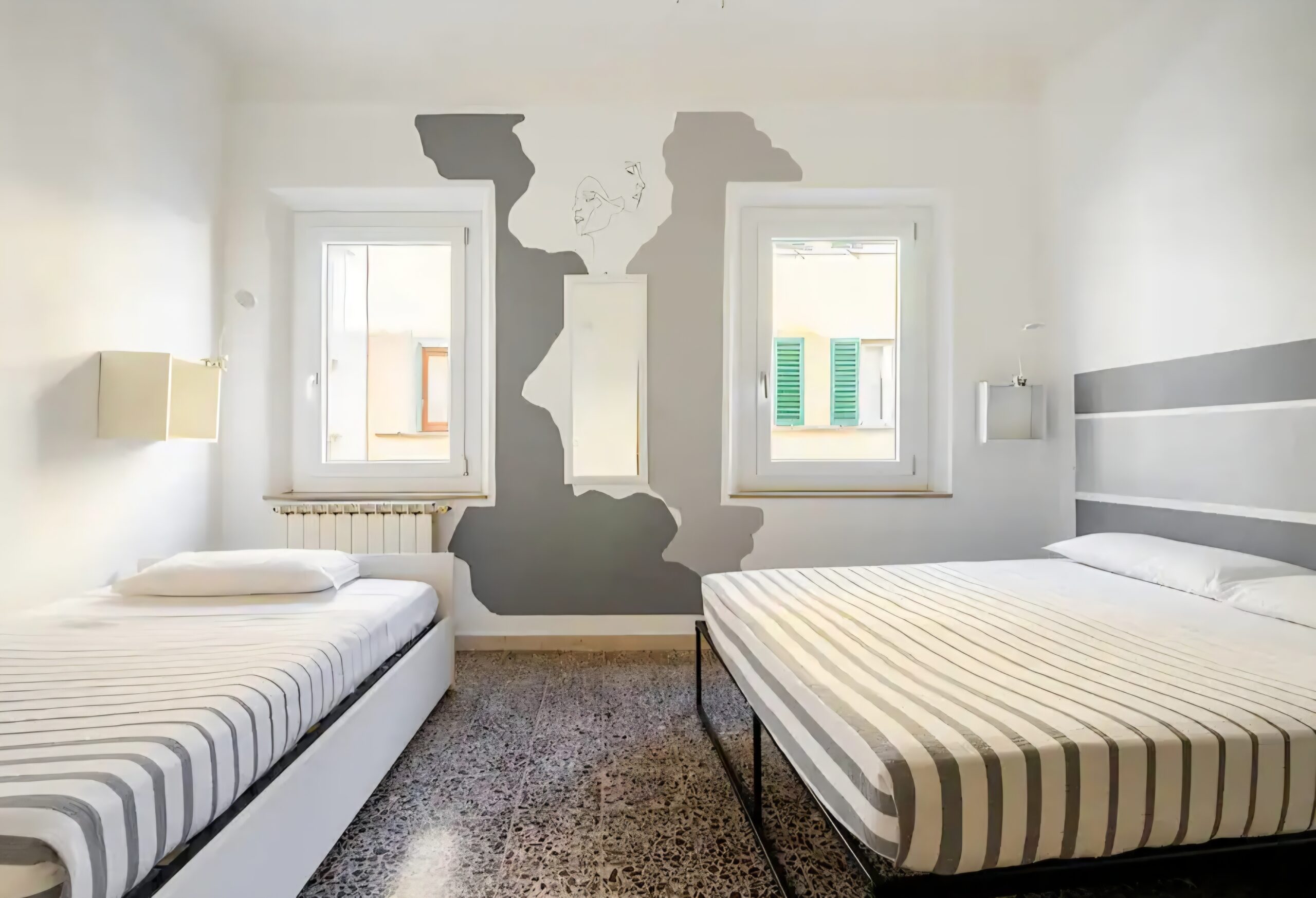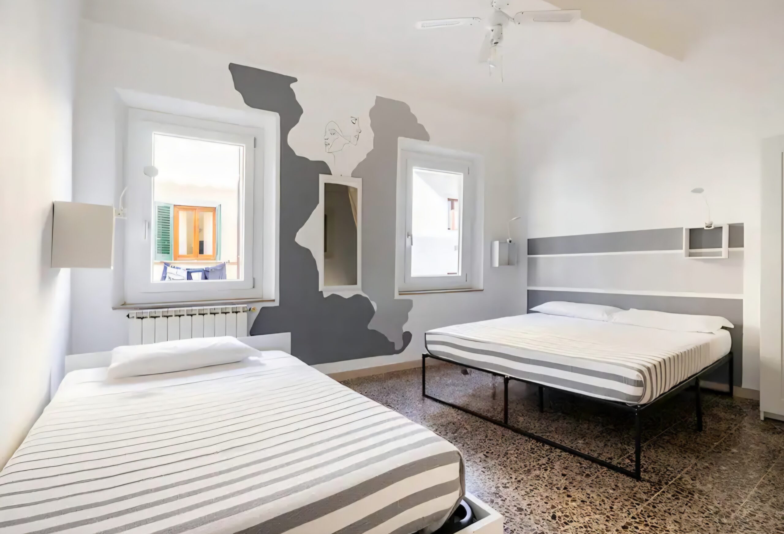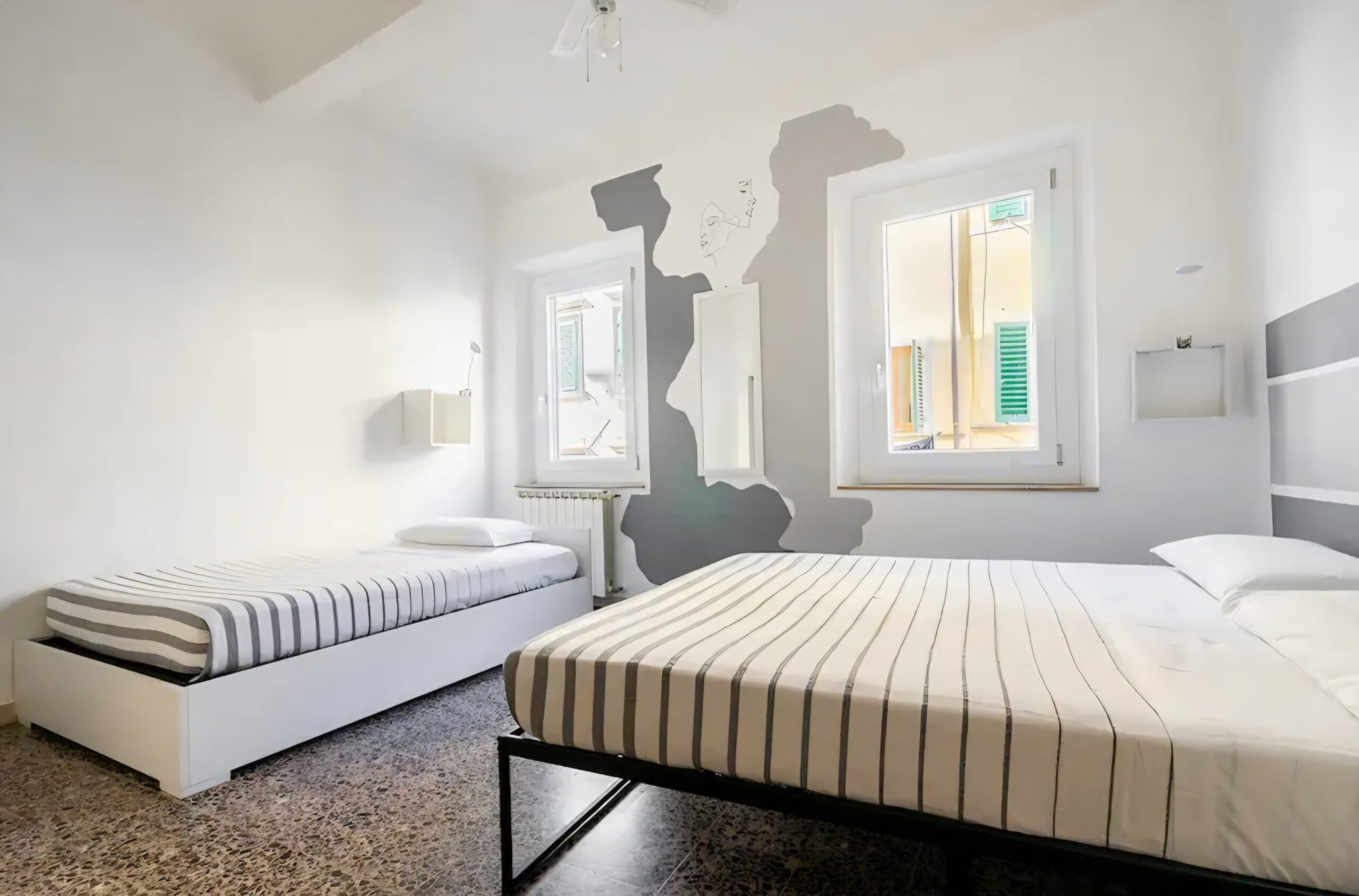 Bedroom 2: One double bed + one French‑size single bed