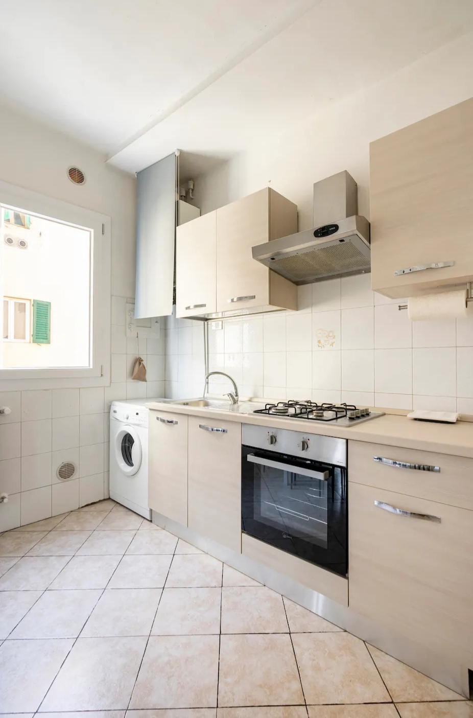 - Bathroom: Large shower cabin, washing machine, cleaning supplies