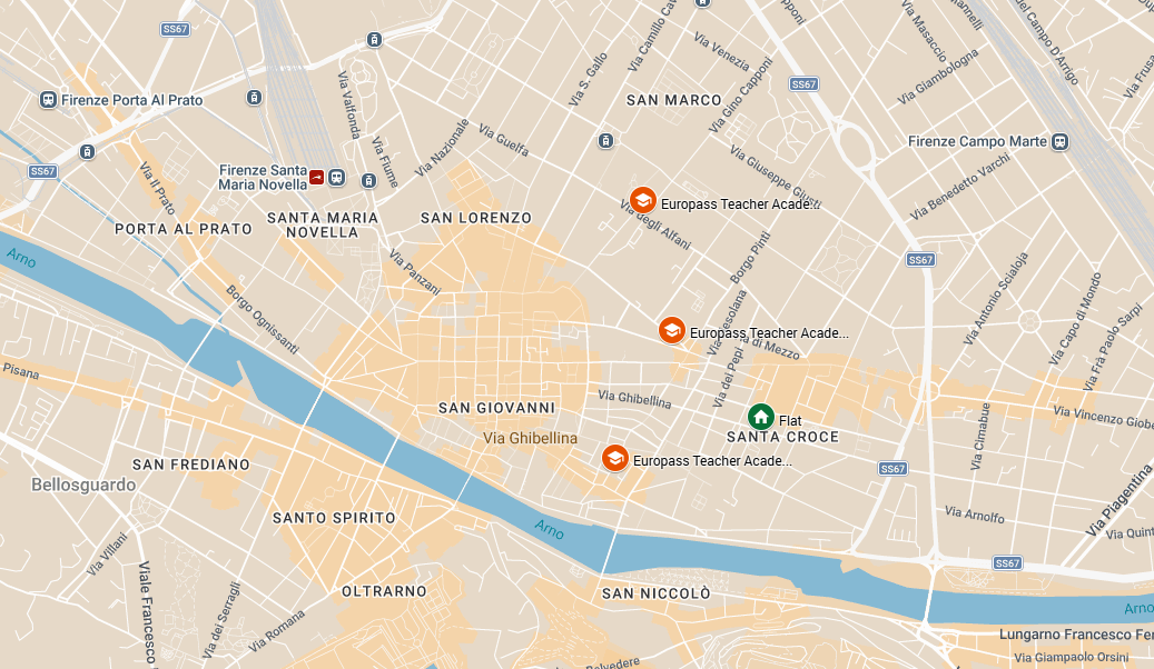- By Tram + Bus: Tram to SMN, then bus to Santa Croce area