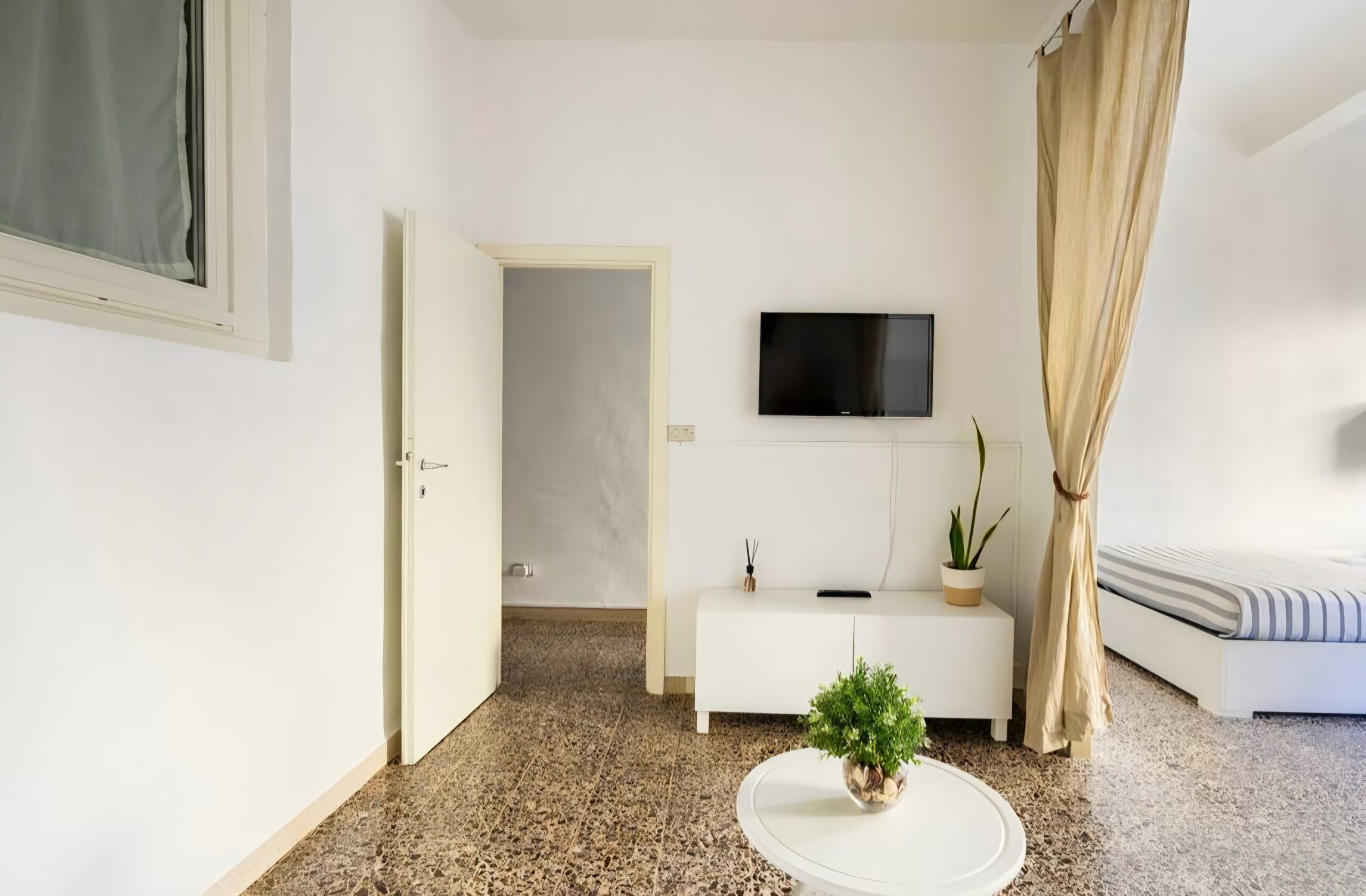 Spacious living room with sofa and Smart TV