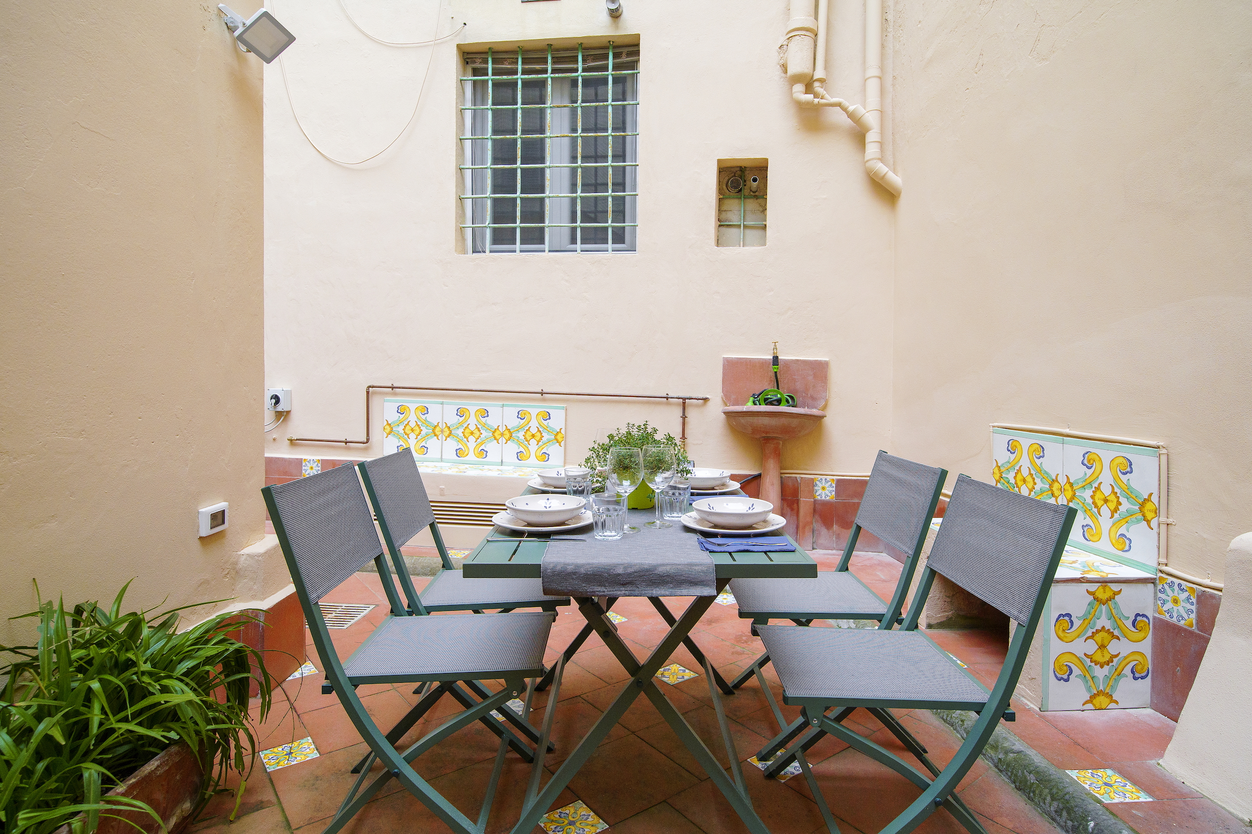 - Pleasant private internal courtyard with table, umbrella, and loungers — perfect for breakfast outdoors or quiet relaxation