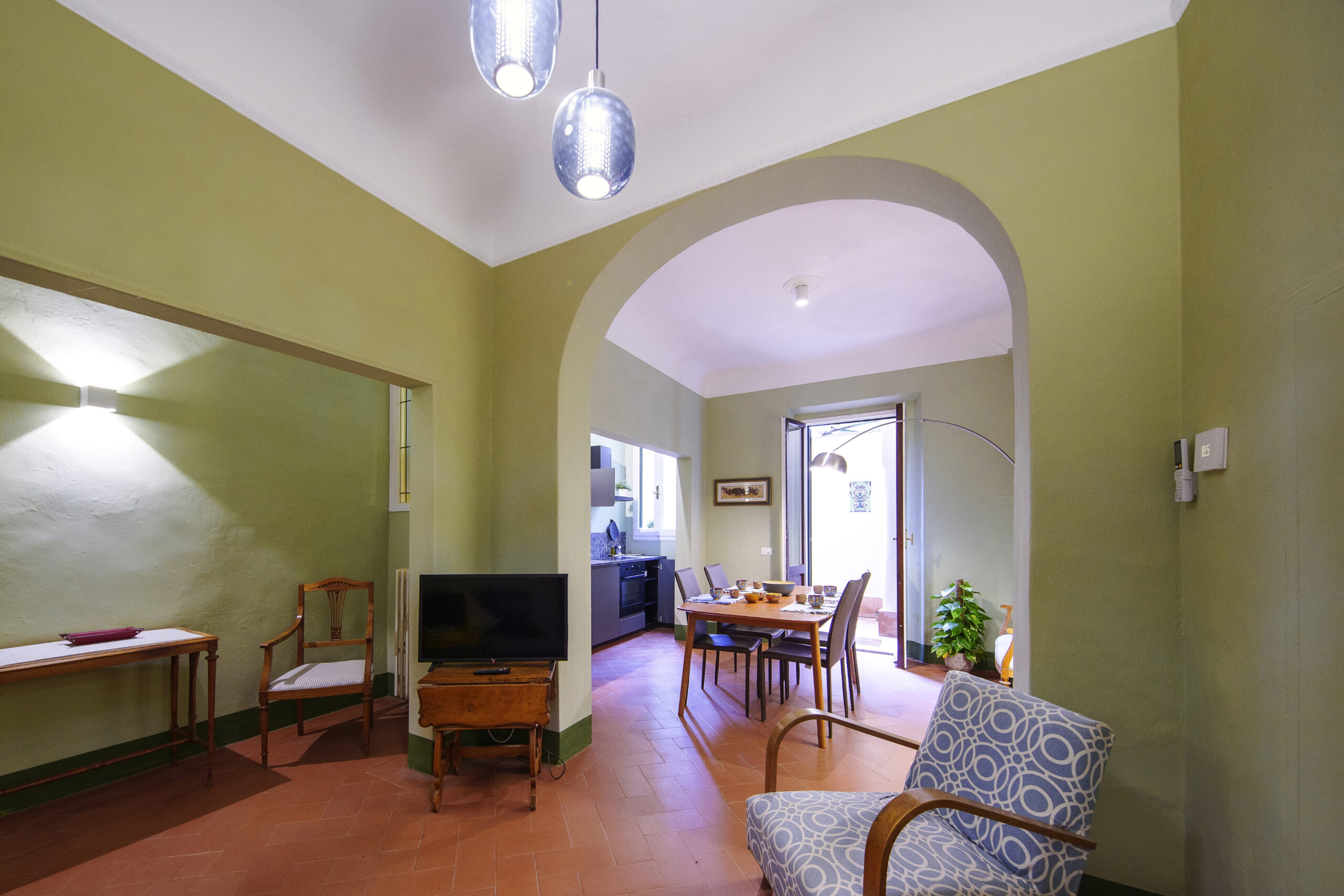 Just a few meters from Piazza Santo Spirito, Palazzo Pitti, and Ponte Vecchio, this charming apartment offers an extraordinary location to experience Florence at its most authentic and vibrant. You are in the heart of the Oltrarno, surrounded by artisan workshops, traditional trattorias, cafés, and lively squares. Recently renovated while preserving its historic soul, the home features warm Impruneta terracotta floors and spacious, welcoming interiors — ideal for families, couples, or small groups.