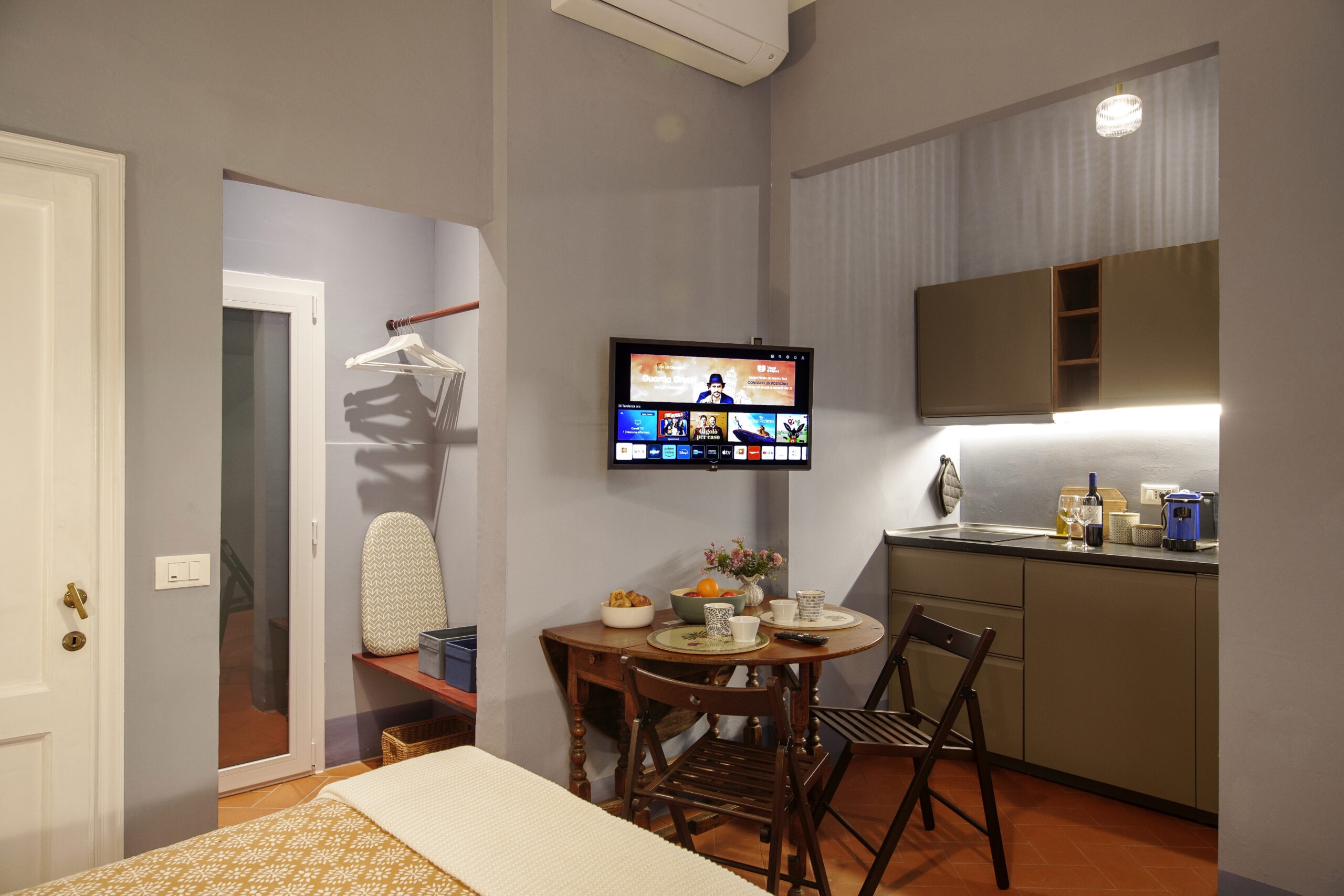 Just a few steps from Piazza Santo Spirito, Palazzo Pitti, and Ponte Vecchio, this welcoming studio sits in one of Florence’s most vibrant and authentic districts: the Oltrarno. Loved by young travelers, students, and creatives, the neighborhood is full of artisan workshops, trendy cafés, lively bars, and energetic squares. It’s the perfect base for experiencing the real Florence on foot, surrounded by the rhythm of local life and the city’s most dynamic nightlife.