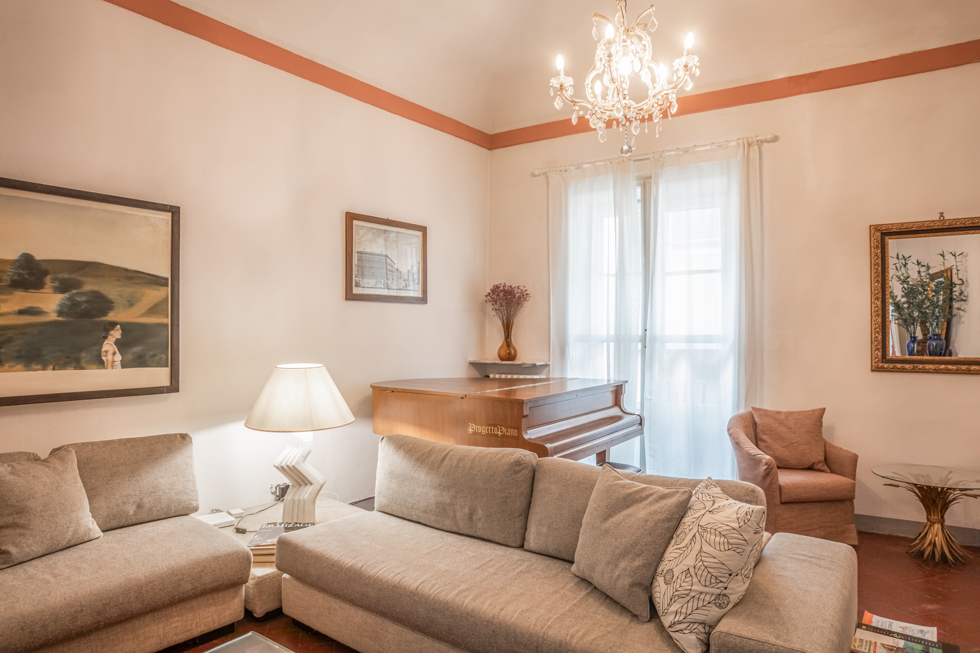 Located inside the prestigious Palazzo Stiattesi, this remarkable 160 m² apartment sits in the very heart of ancient Florence, just behind Palazzo Vecchio and a short 5‑minute walk from Ponte Vecchio, the Uffizi Gallery, and the Bargello. With its private courtyard, green terrace overlooking the tower of Palazzo Vecchio, and refined interiors, the residence offers an authentic Florentine experience in a setting rich with history and charm. The generous spaces, elegant furnishings, and unique features — including a professional grand piano — make this home ideal for guests seeking comfort, culture, and a truly special stay.